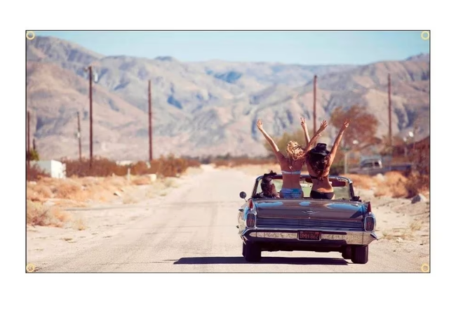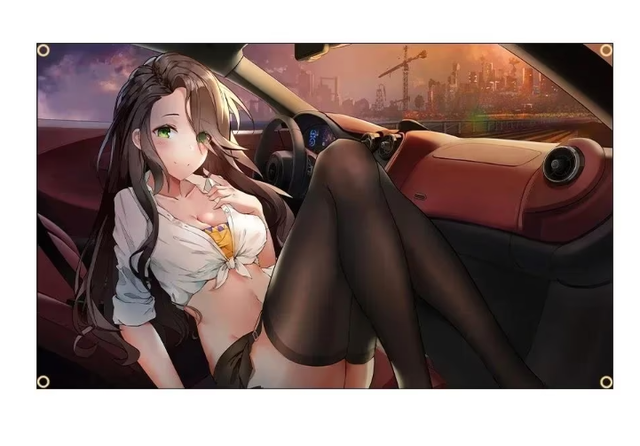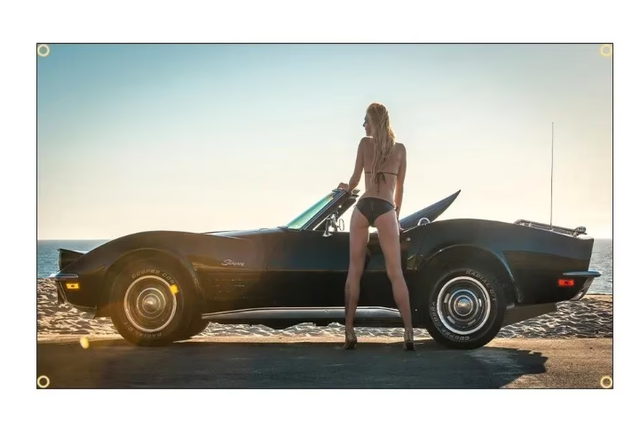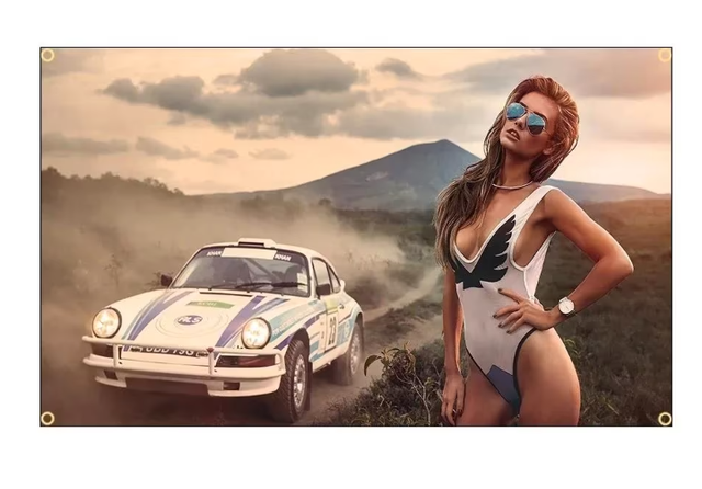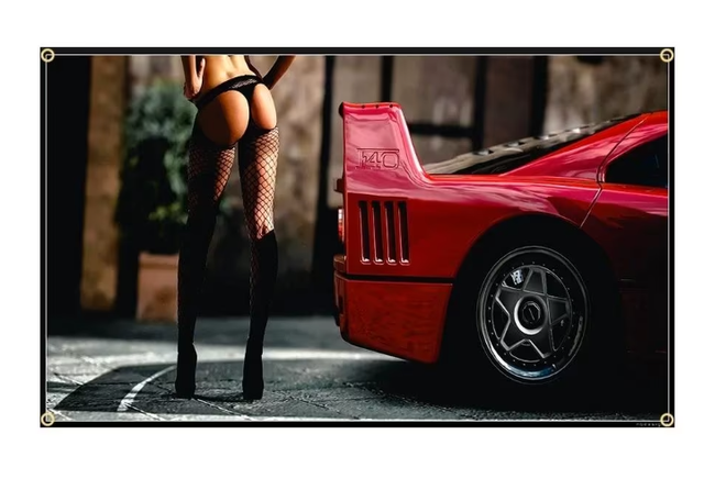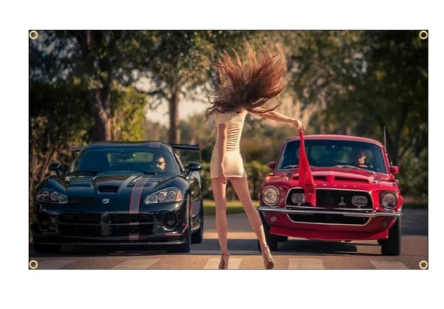 Grote vlaggen Meiden en Auto's (150x90cm) Nieuw.