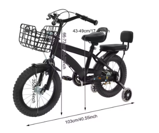 Kinderfiets 14 inch met zijwieltjes verstelbaar 60kg max