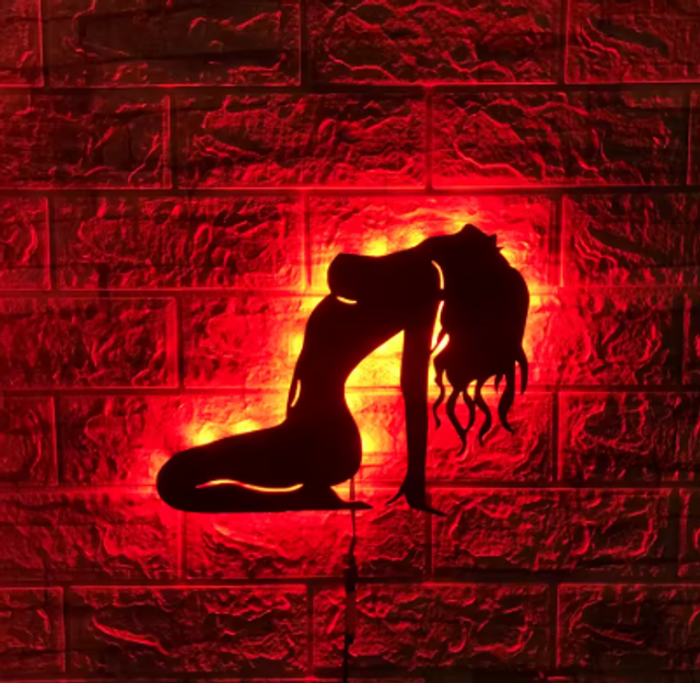 LED wandlamp meerkleurig op USB - Vrouw Silhouet