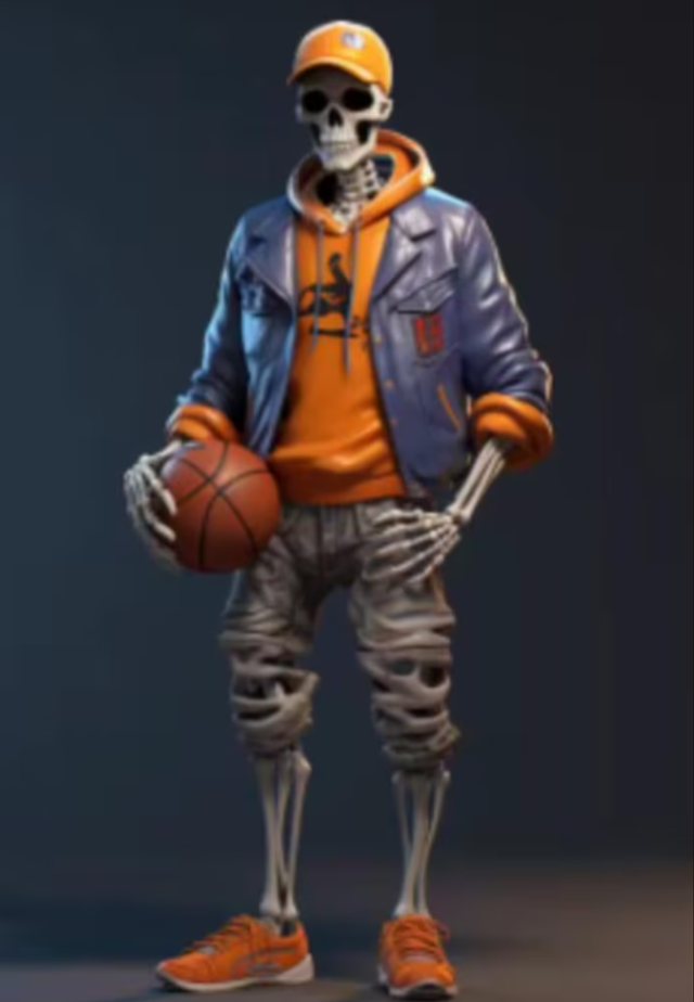 Prachtig beeldje Skelet basketballer (15cm)