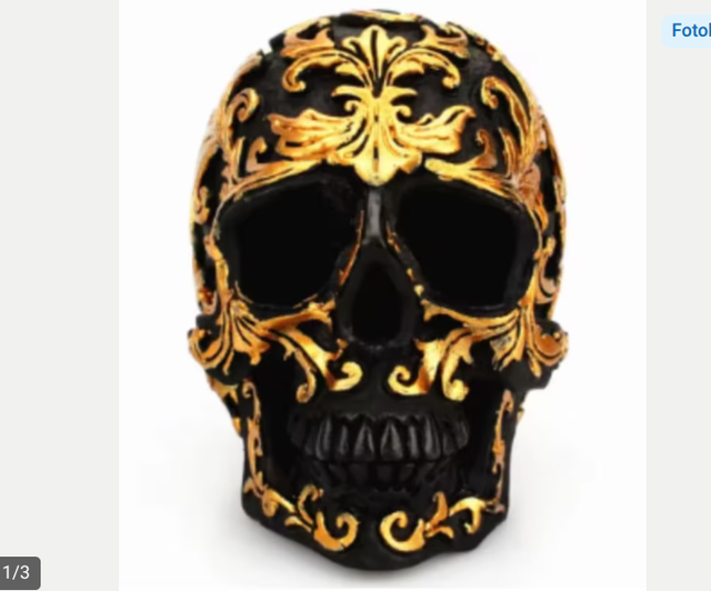 Prachtig schedel beeld goud met zwart (10cm) Nieuw.