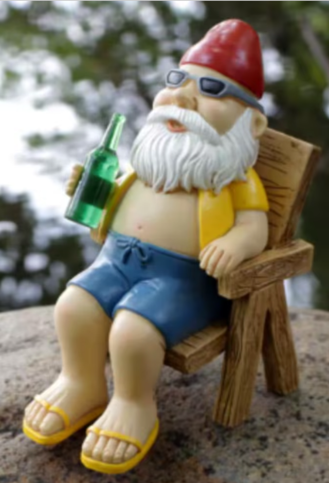Prachtig tuinbeeldje Kabouter met drankje op stoel (12.5cm)