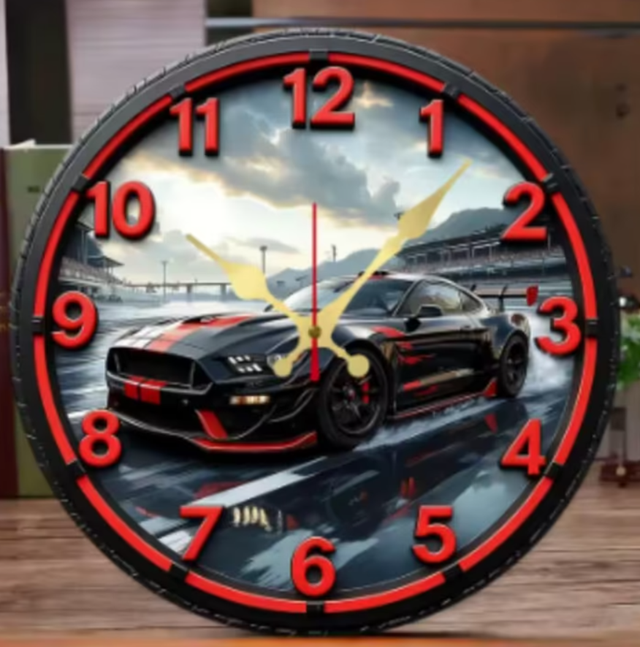 Ronde wandklok van hout analoge Sportwagen (25cm)
