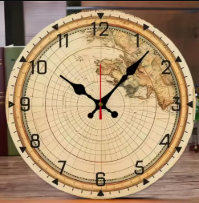 Ronde wandklok van hout Antieke wereldkaart (25cm)