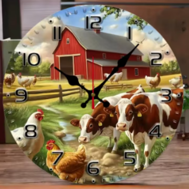 Ronde wandklok van hout Boerderij (25cm)