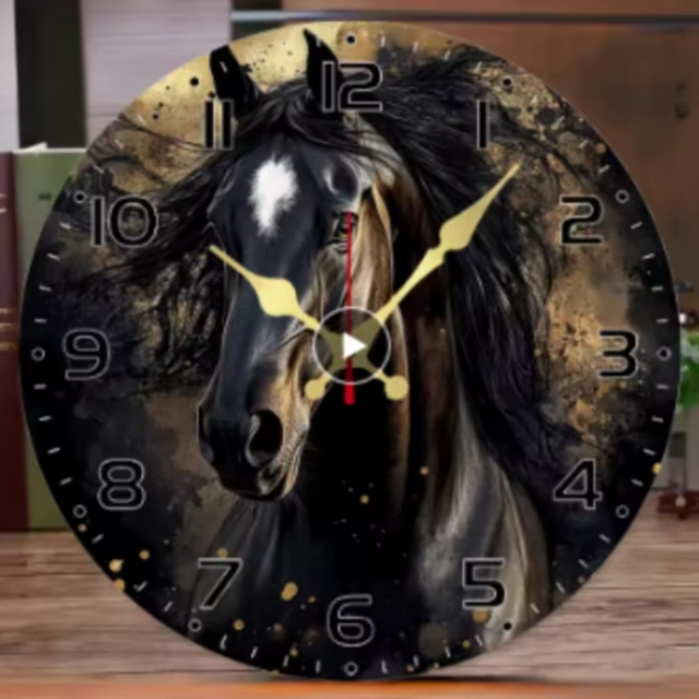 Ronde wandklok van hout Donker Paard (25cm)