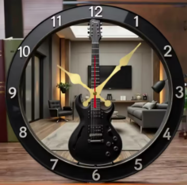 Ronde wandklok van hout Elektrisch Gitaar zwart (25cm)