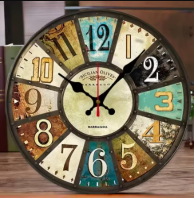 Ronde wandklok van hout Franse stijl kleurig (25cm)