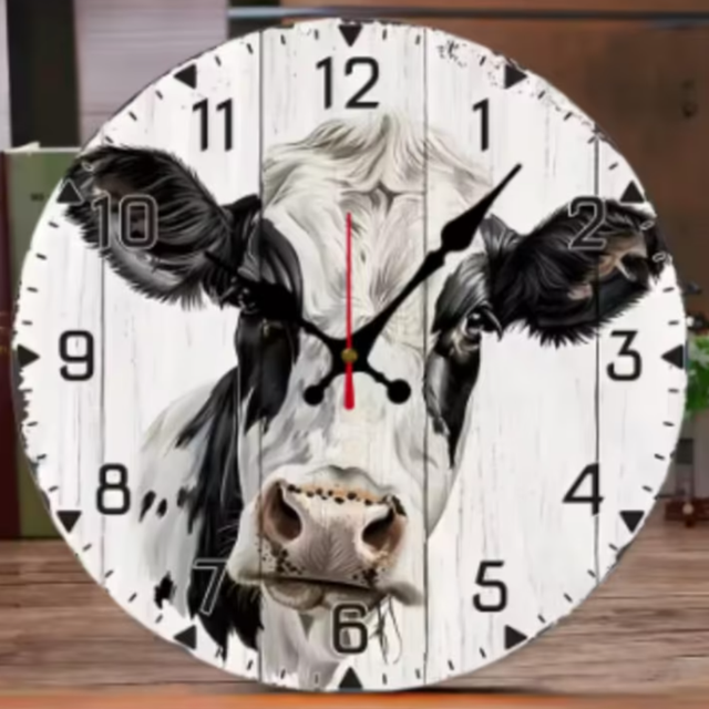 Ronde wandklok van hout Friese Koe (25cm)