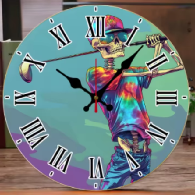 Ronde wandklok van hout Golvend Skelet (25cm)