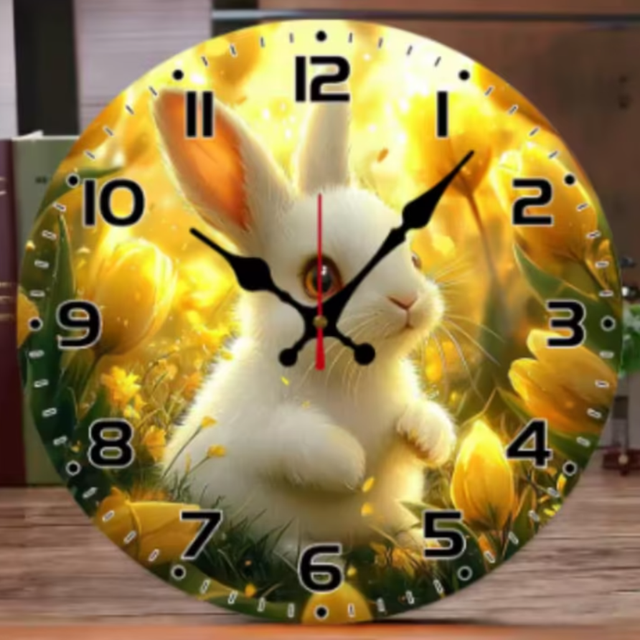 Ronde wandklok van hout Konijntje (25cm)