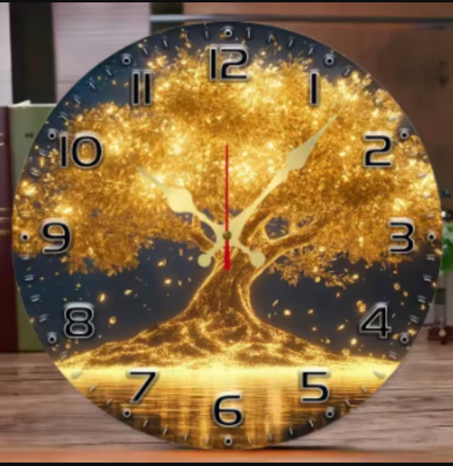 Ronde wandklok van hout Lichtgevende Levensboom (25cm)
