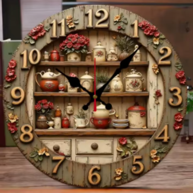 Ronde wandklok van hout Theeservies (25cm)