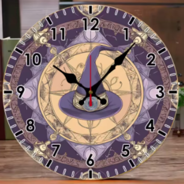 Ronde wandklok van hout Tovenaarshoed paars (25cm)