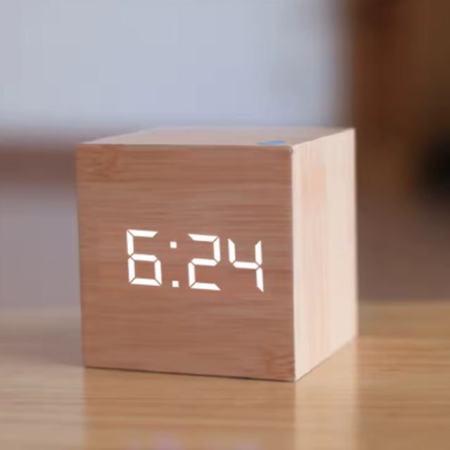Vierkante Digitale LED Wekker – Houten Retro Design