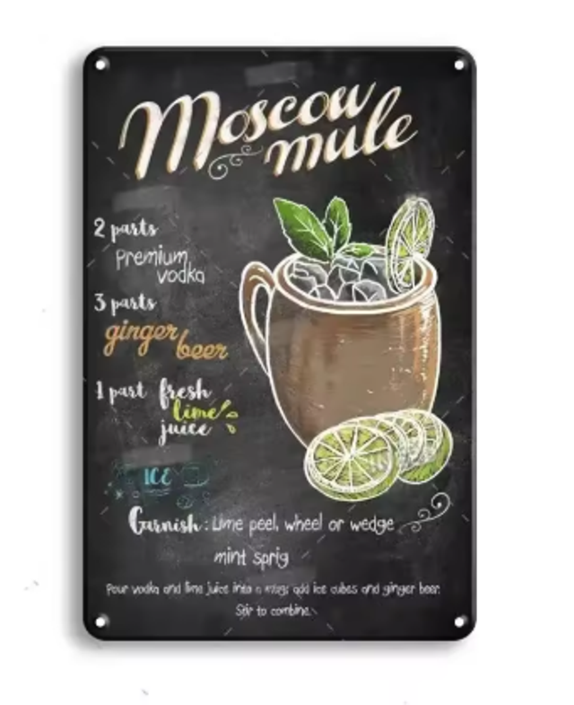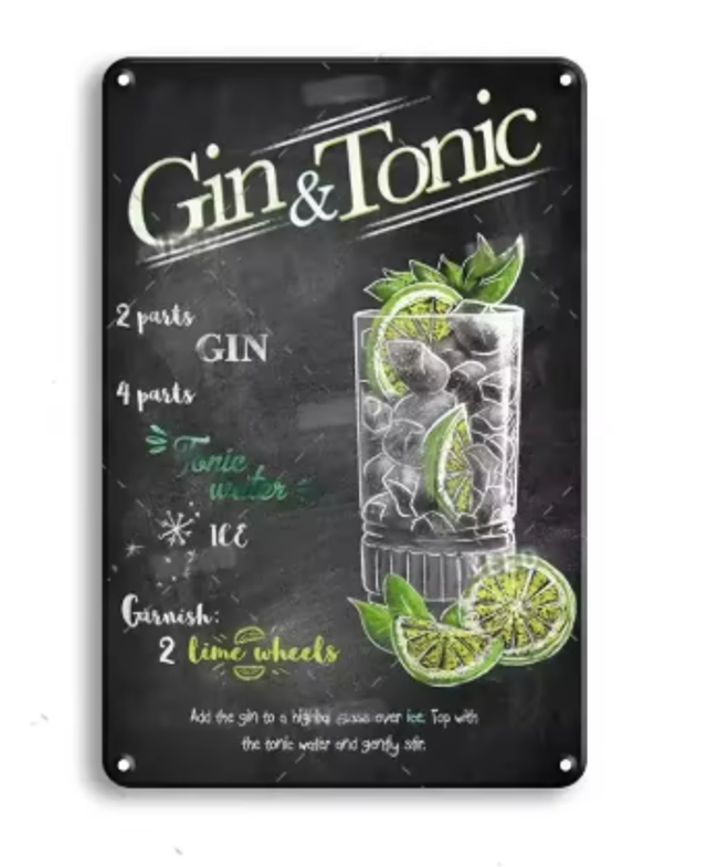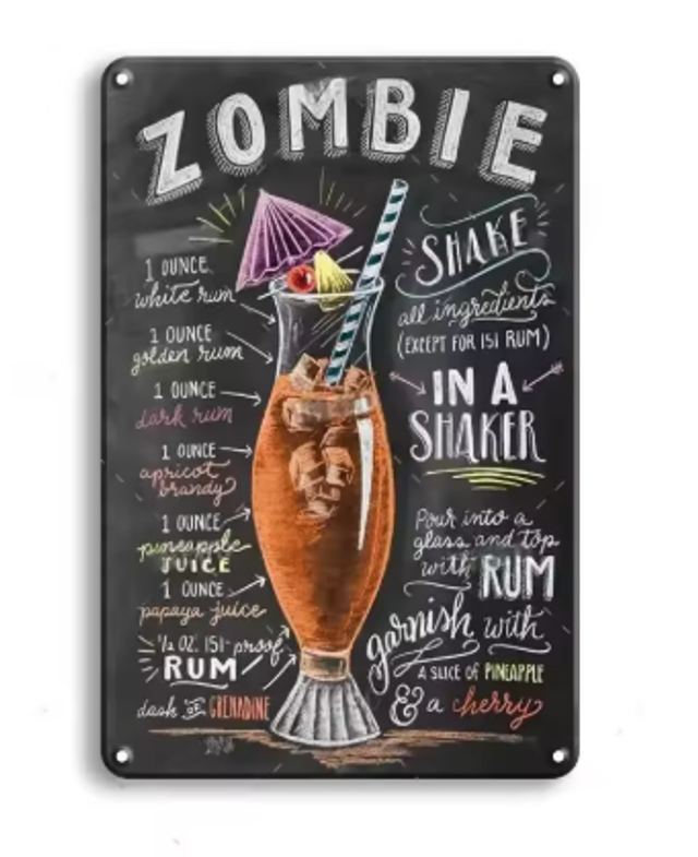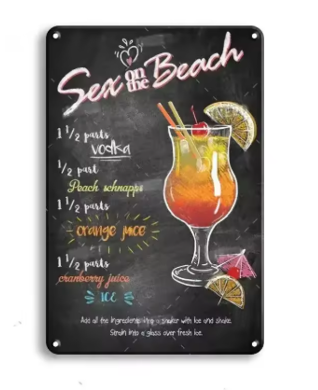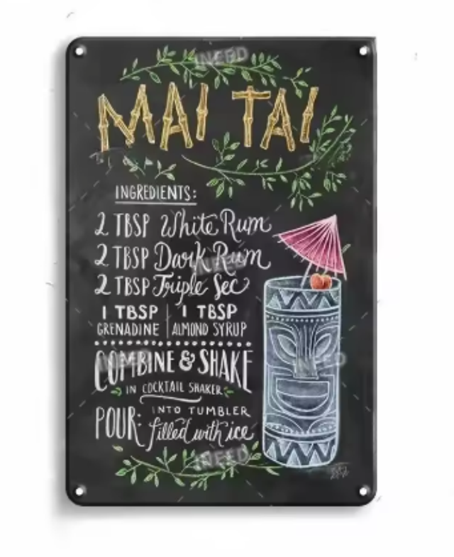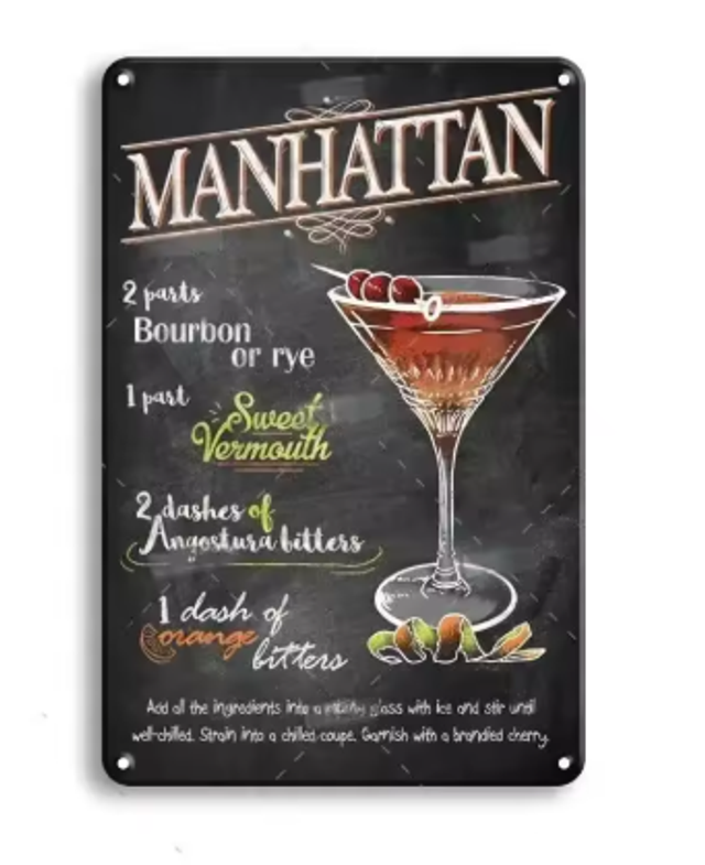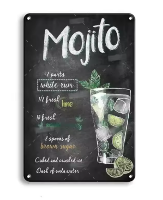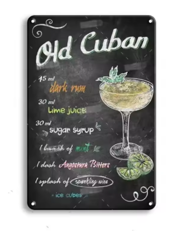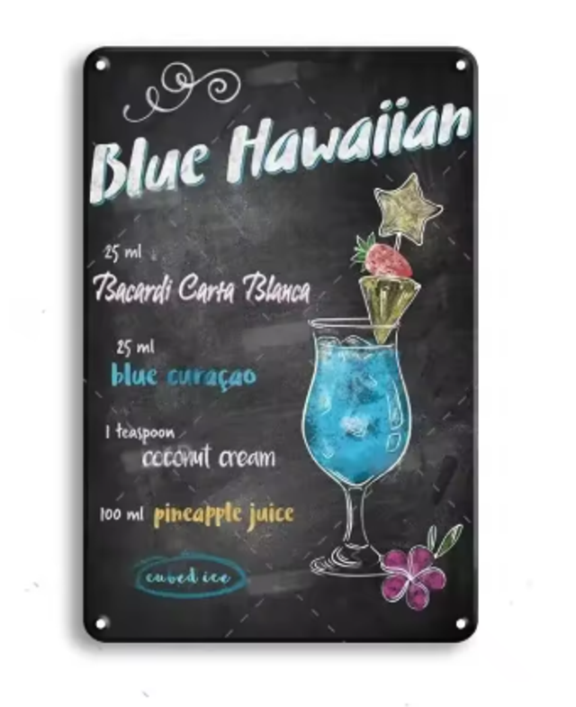 Vintage metalen bordjes Cocktails (30x20cm)