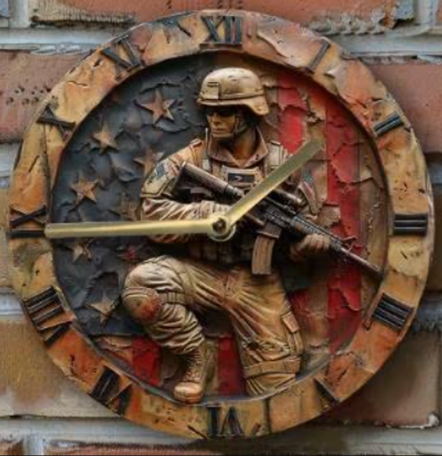 Vintage ronde wandklok van metaal - Amerikaanse Soldaat (20cm)