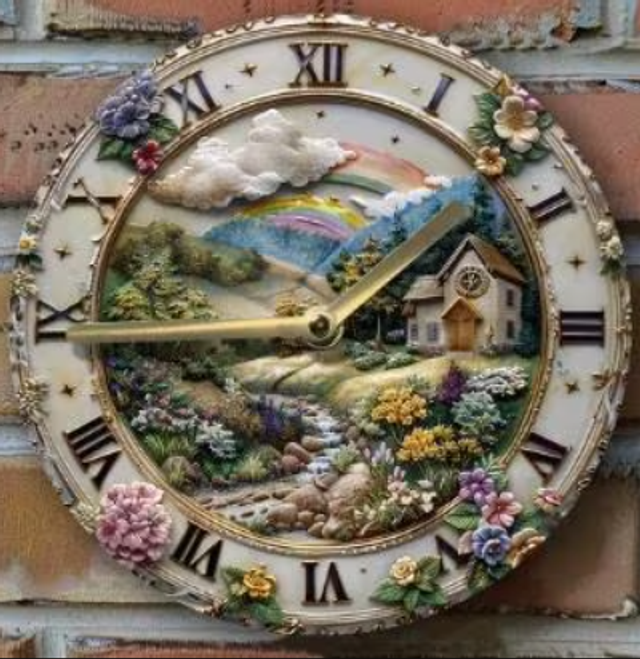Vintage ronde wandklok van metaal - Regenboog (20cm)