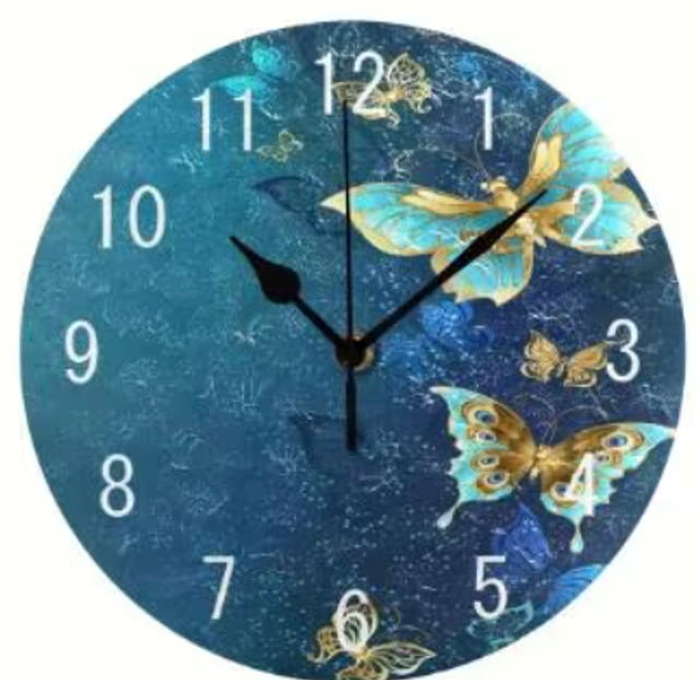 Vintage ronde wandklok van metaal - Vlinders (20cm)