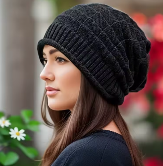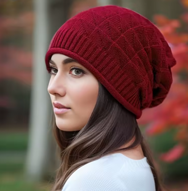 Warme muts voor dames elastisch dikke slouch cap